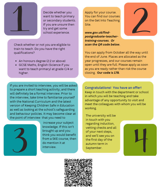 You will also require GCSE Maths, English (and Science for anyone teaching primary) at Grade C/4 or above.
