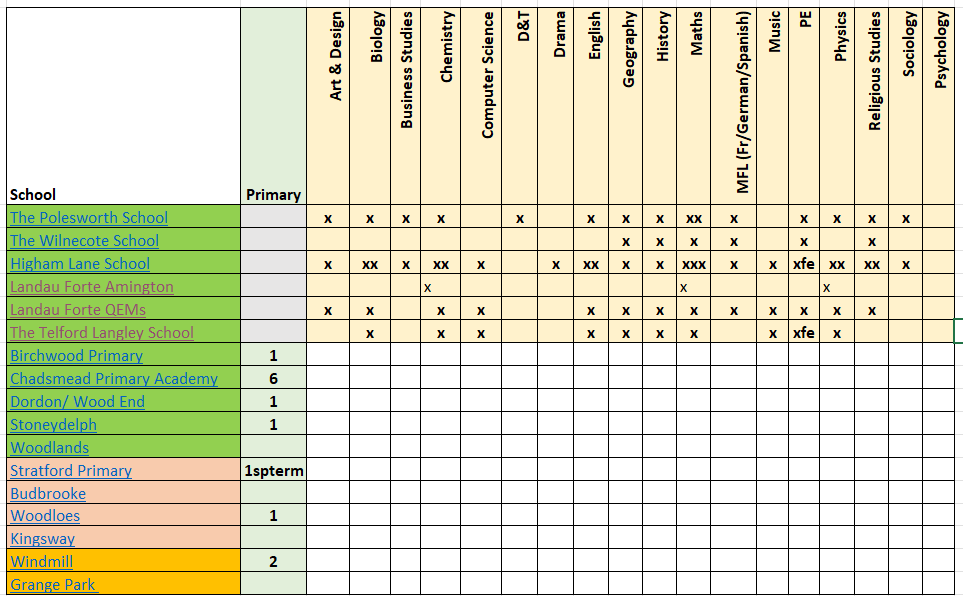 Below are listed the available training opportunities across our schools. As you see, we offer both primary and secondary training opportunities. If you wish to find out more about the school you're interested in, then select the appropriate tab below the grid and scan it's QR code.